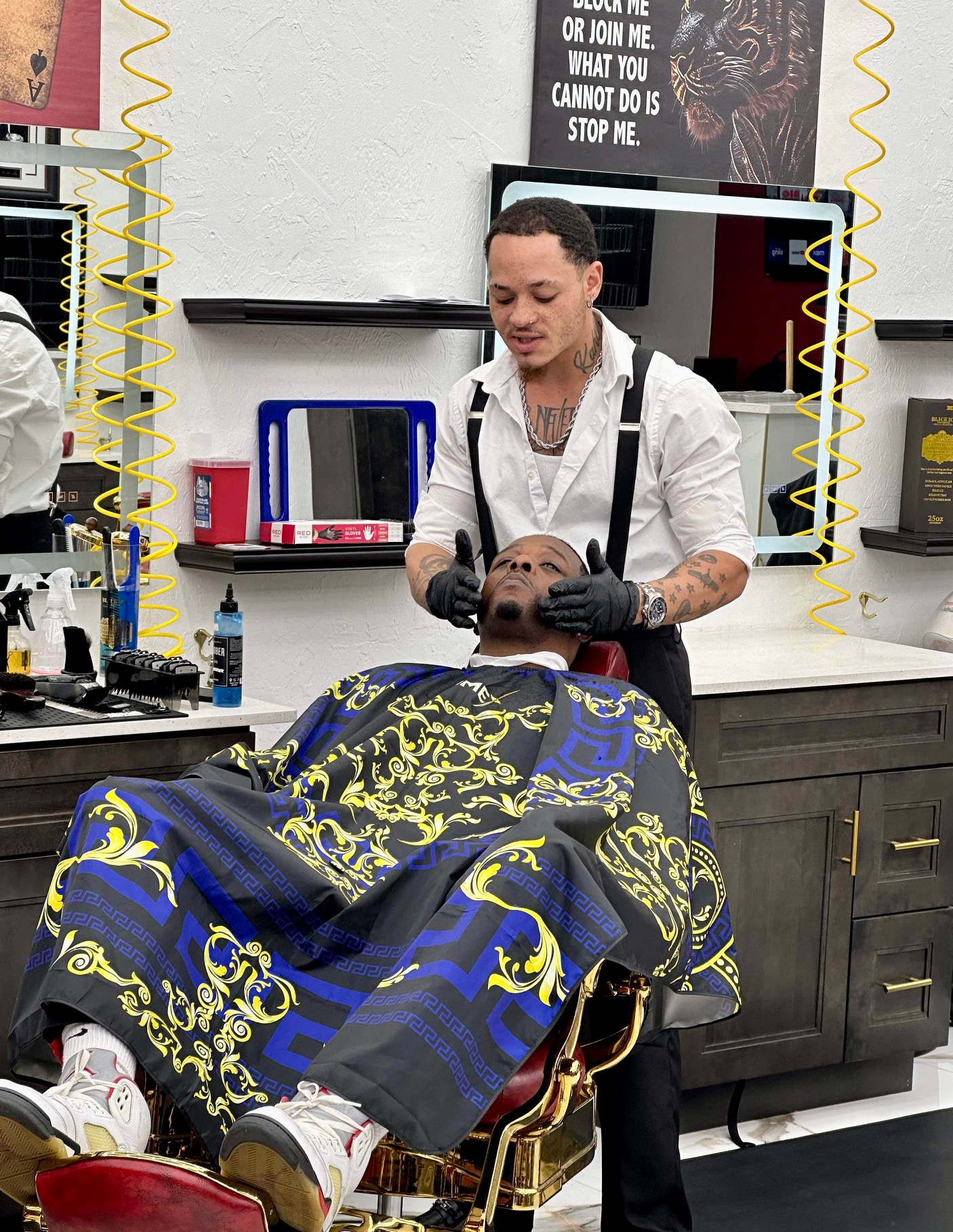 Premier Cuts Barber Shop, nestled in the heart of Cape Coral, promises not just haircuts & beard shaves, but an unforgettable experience. As you step into this elegant establishment, the opulence of marble floors & regal gold barbering chairs invites you, transporting you to a realm of royalty. From the moment you settle into a chair, you're treated to a selection of complimentary refreshments, adding an extra layer of comfort to your experience.